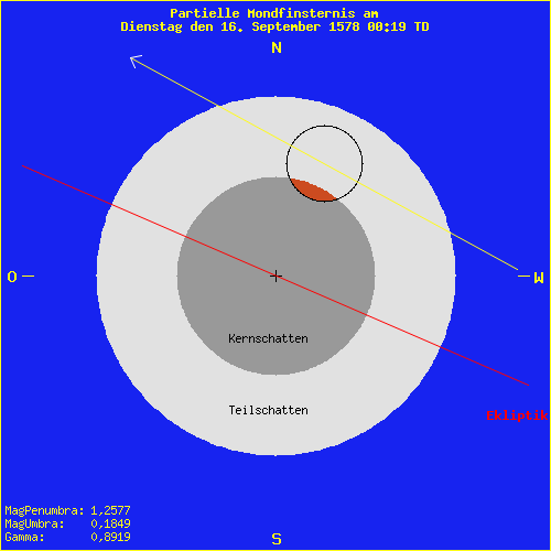 Mondfinsternis am Dienstag den 16. September 1578 00:19 TD