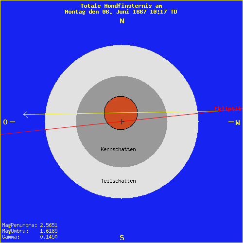 Mondfinsternis am Montag den 06. Juni 1667 10:17 TD