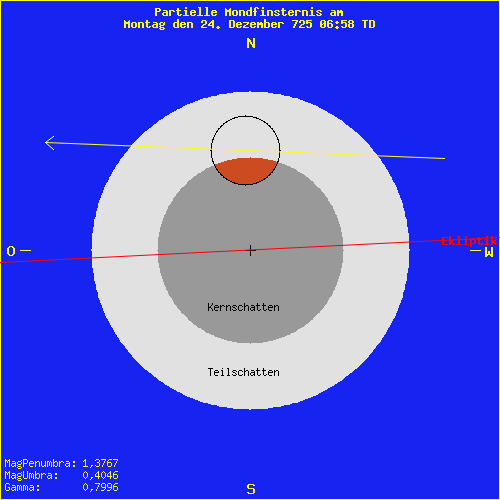 Mondfinsternis am Montag den 24. Dezember 725 06:58 TD