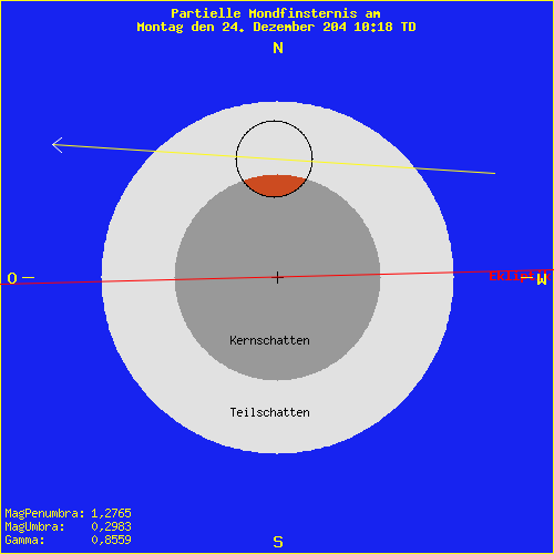 Mondfinsternis am Montag den 24. Dezember 204 10:18 TD Inex Serie: 56 Mitglied: 57 von 183Saros Serie: 57Lunation: -22202 Abbildung zeigt das Maximum