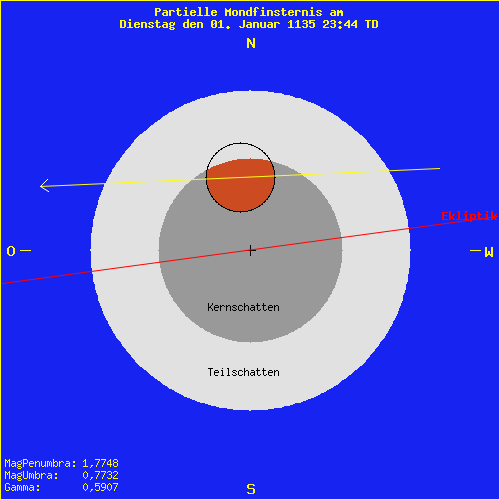 Mondfinsternis am Dienstag den 01. Januar 1135 23:44 TD