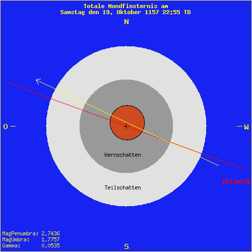 Mondfinsternis am Samstag den 19. Oktober 1157 22:55 TD