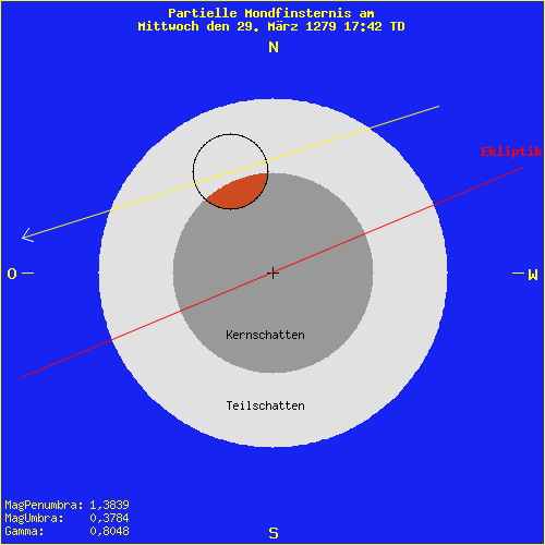 Mondfinsternis am Mittwoch den 29. März 1279 17:42 TD