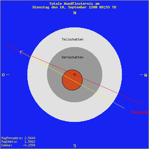 Mondfinsternis am Dienstag den 10. September 1280 09:53 TD
