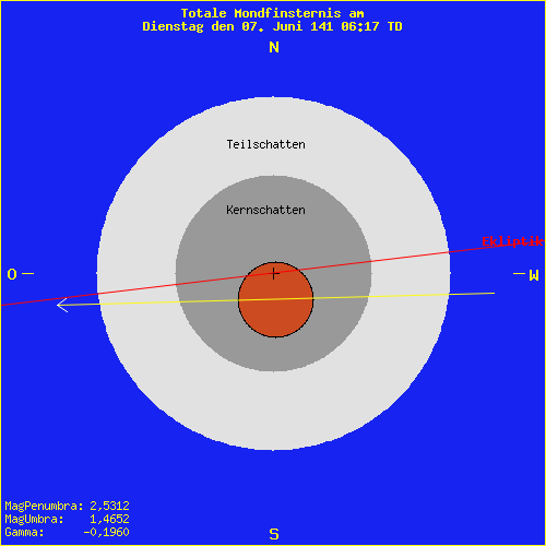 Mondfinsternis am Dienstag den 07. Juni 141 06:17 TD Saros Serie: 71 Mitglied: 35 von 72Inex Serie: 30Lunation: -22988 Abbildung zeigt das Maximum