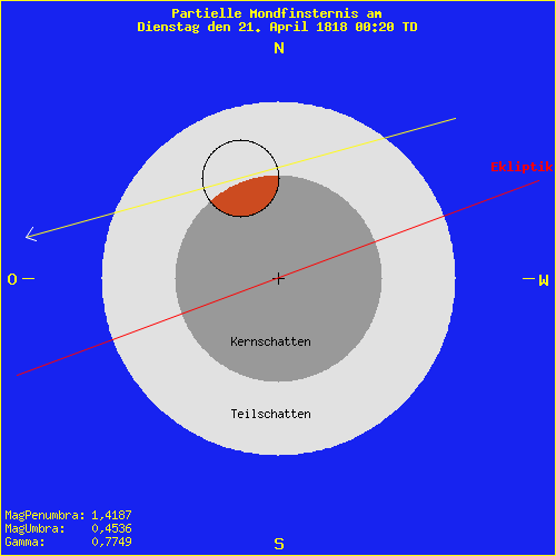 Mondfinsternis am Dienstag den 21. April 1818 00:20 TD