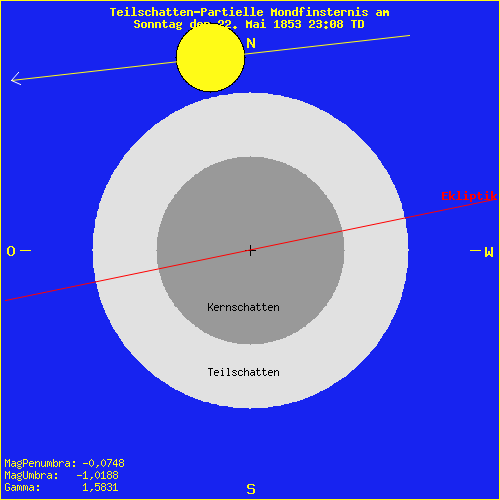 Typ: HalbschattenAbsteigender Knoten: 24.05.1853 03:10:55 UTCEntfernung: 358.701 km
