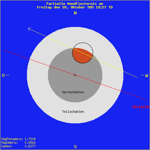 Mondfinsternis am Freitag den 28. Oktober 505 19:27 TD