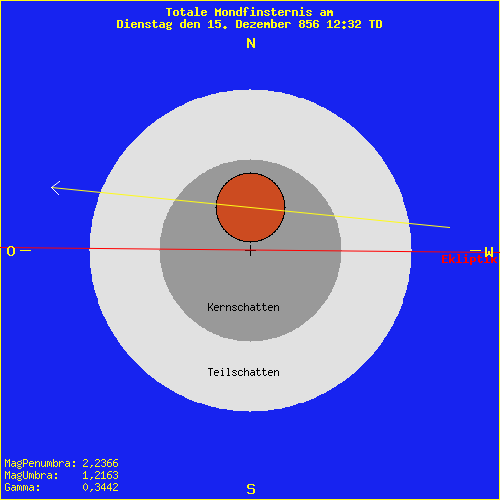 Mondfinsternis am Dienstag den 15. Dezember 856 12:32 TD Saros Serie: 87 Mitglied: 47 von 73Inex Serie: 44Lunation: -14138 Abbildung zeigt das Maximum